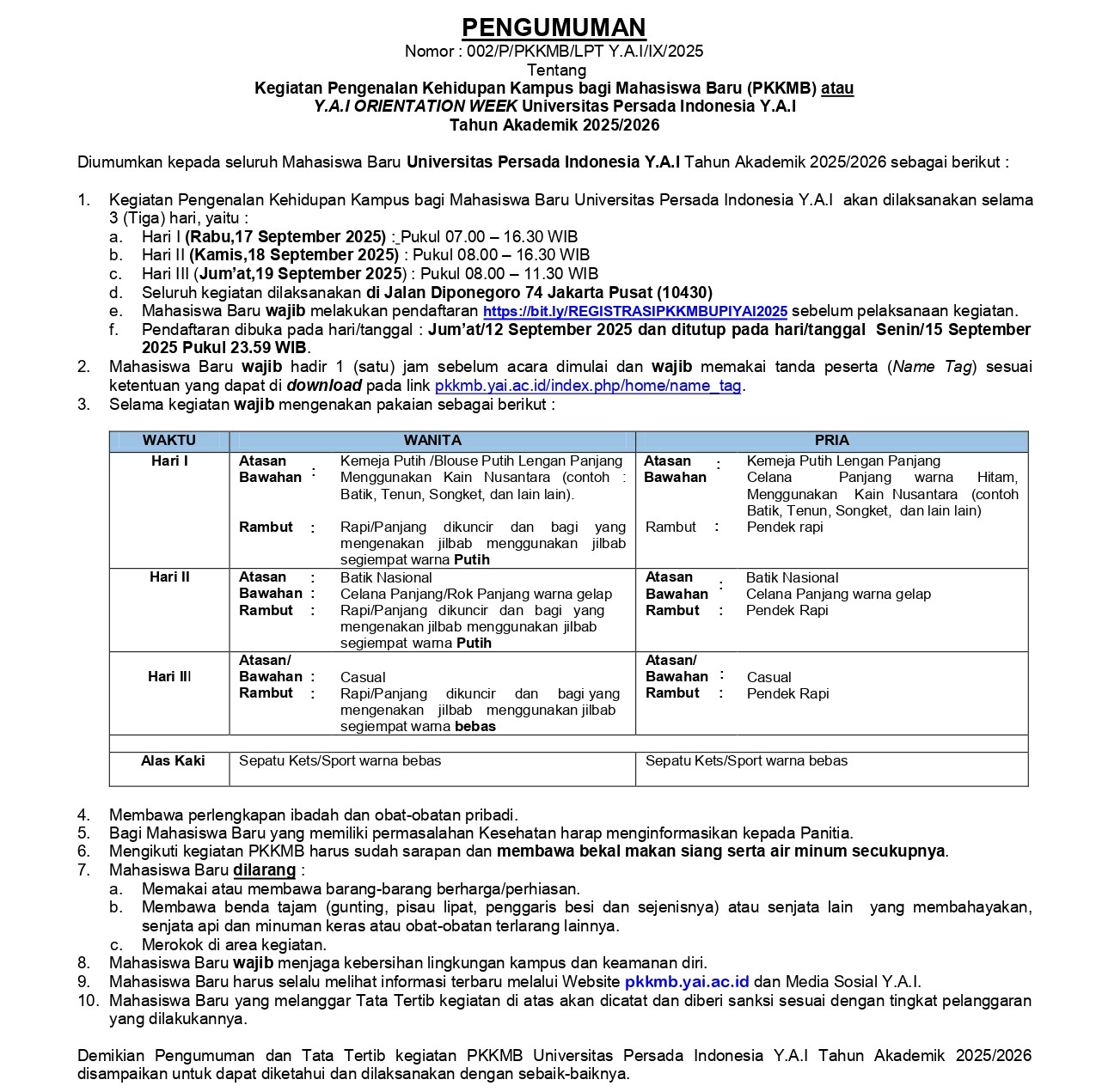 Kegiatan Pengenalan Kehidupan Kampus bagi Mahasiswa Baru (PKKMB), Mahasiswa baru wajib melakukan pendaftaran sebelum pelaksanaan kegiatan.